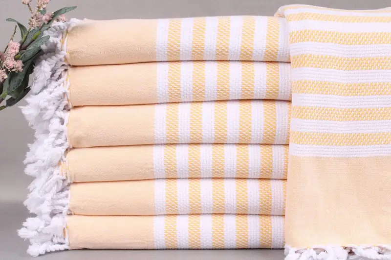 Each product is woven from organic Turkish cotton, ensuring superior absorbency and comfort. Resulting in durable yet soft fabrics, the towels range from 40x67 inches or 100x170 centimeters, with a tolerance of ±2 inches or 5 centimeters. Each piece weighs 380 grams.