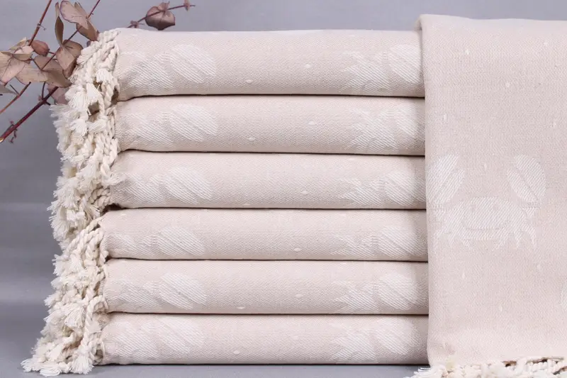 All my beach towels, small towels, and throws are woven from organic Turkish cotton on looms, ensuring durability and hypoallergenic properties. Resulting in a versatile product characterized by excellent absorbency and comfort. Each item measures 40x67 inches or 100x170 centimeters, weighing 420 grams, with a hand-weaving tolerance of ± 2 inches or 5 centimeters.