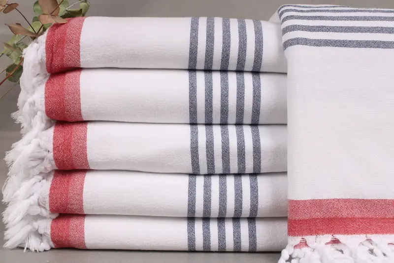 Each product is crafted from organic Turkish cotton, ensuring a highly absorbent and durable fiber composition. Resulting in towels that become progressively softer with each wash. The dimensions of each item are 36x67 inches or 90x170 centimeters, weighing approximately 460 grams. The hand-weaving process allows for a tolerance of ±2 inches or 5 centimeters.