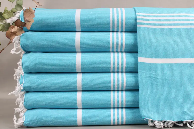 Woven from organic Turkish cotton, these towels are characterized by superior absorbency and durability. Each piece, weighing 266 grams, measures 40x71 inches or 100x180 centimeters, ensuring precise fit and function. Due to the hand-weaving process, there may be slight dimensional variations of up to 2 inches or 5 centimeters.