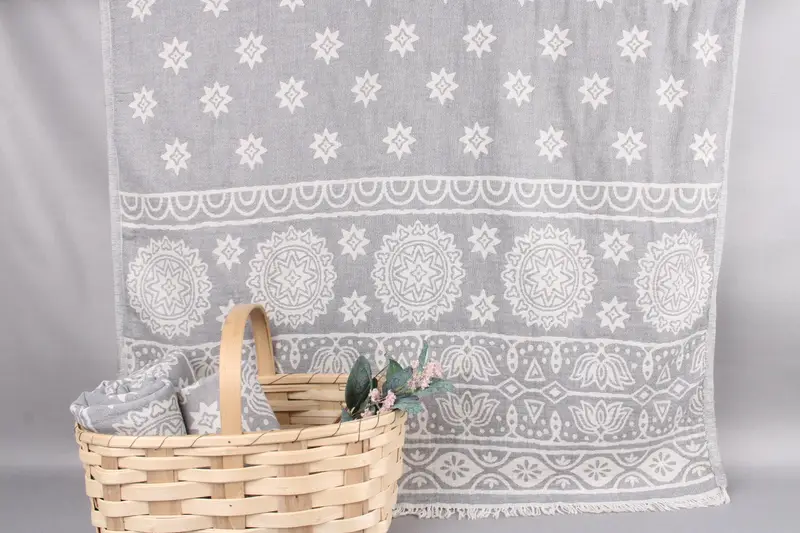 The product comprises 100% Turkish cotton, ensuring an exceptional level of absorbency and durability. Resulting in a lightweight yet effective towel, each piece measures 36x71 inches or 90x180 centimeters, with a weight of 320 grams. Handwoven on looms with potential size variations up to ±2 inches or 5 centimeters.