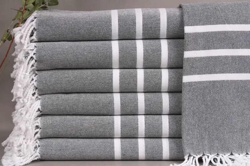 The product line consists of Turkish towels and blankets woven from organic Turkish cotton, resulting in a durable and comfortable fiber composition. Ensuring absorbency and softness, these towels are characterized by a hand-weaving process, allowing for a ±2" or 5cm tolerance in size. Each towel, blanket, or hand towel measures 40x71 inches or 100x180 centimeters and weighs 430 grams.