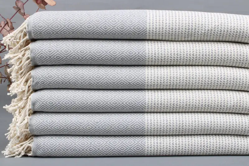 Characterized by high-quality organic Turkish cotton, each product is hand-woven on looms, ensuring superior absorbency and durability. Resulting in dimensions of 40x70 inches or 100x180 centimeters, the products weigh between 425-475 grams. Variations of up to ± 2 inches or 5 centimeters are acceptable due to the weaving process.
