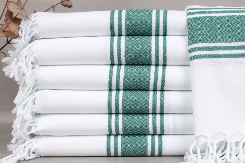 Organic Turkish cotton is utilized in the construction of all beach towels, hand towels, and blankets, ensuring superior absorbency and durability. Characterized by their 40x71 inches (100x180 cm) dimensions, these items maintain a weight of 300 grams, with a tolerance of ± 2" or 5cm due to the hand-weaving process. The towels are personalized with letters, names, or logos, with embroidery or name options available.