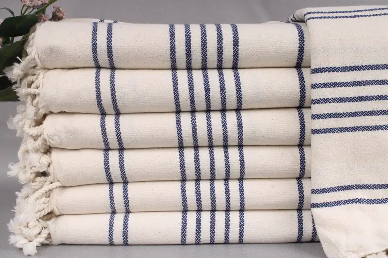 Turkish Towels are woven from organic Turkish cotton, characterized by high absorbency and durability. Each product measures 40x71 inches (100x180 cm) and weighs 340 grams, with a weaving tolerance of ± 2 inches (± 5 cm). Resulting in consistent product quality, each item can be personalized with embroidery or name inscriptions.
