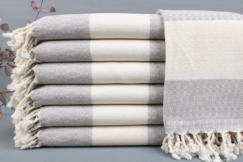 Constructed from organic Turkish cotton, the towels exhibit high absorbency, ensuring efficient moisture wicking and soft texture. Characterized by dimensions of 40x70 inches or 100x180 centimeters and a weight ranging from 425-475 grams, the tolerance for weaving is ±2 inches or 5 cm. Each piece is meticulously hand-woven on looms, resulting in minor variations.