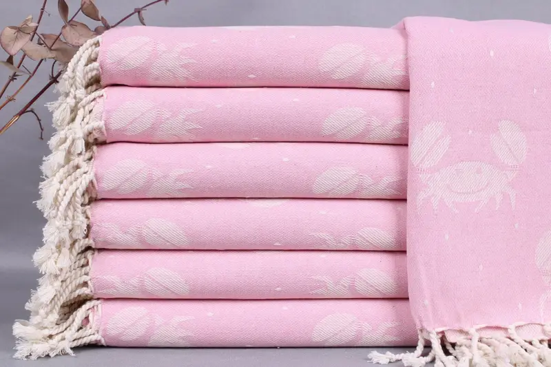 These towels are made from organic Turkish cotton, ensuring superior absorbency and durability. Each towel, blanket, or hand towel is meticulously hand-woven on looms, resulting in dimensions of 40x67 inches or 100x170 centimeters. The weight of each item is 420 grams, with allowable weaving tolerances of ±2 inches or 5 centimeters.