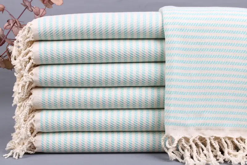 Each Turkish towel is constructed from organic Turkish cotton, ensuring superior absorbency and comfort. Characterized by dimensions of 40x70 inches or 100x180 centimeters, these towels weigh between 425-475 grams, offering durability while maintaining a lightweight feel. Hand-woven with a tolerance of ±2 inches or 5 centimeters, these products exhibit slight variations in size.