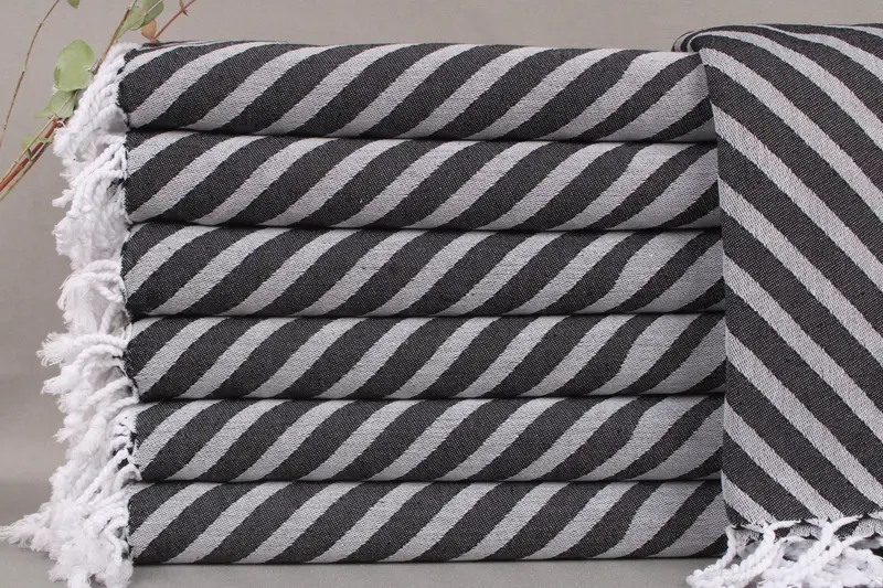 Characterized by high-quality Turkish cotton, these towels are woven from organic fibers, ensuring superior absorbency and durability. Measuring 40x71 inches or 100x180 centimeters, these towels weigh 336 grams and are crafted with a hand-weaving tolerance of ± 2 inches or 5 centimeters. Resulting in a final product that maintains its shape and softness.