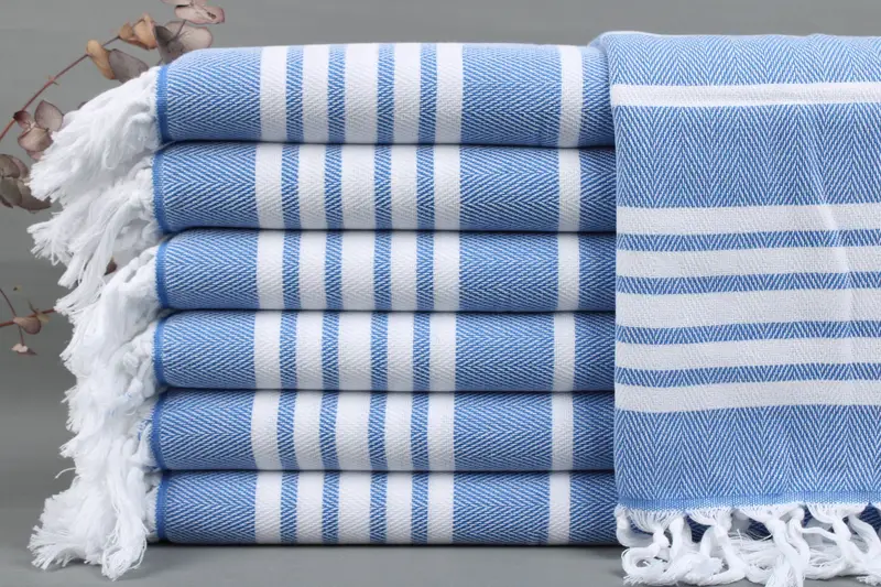 Each Turkish towel comprises woven organic Turkish cotton, ensuring superior absorbency and durability. Measuring 20x40 inches or 50x100 centimeters with a tolerance of ± 2 inches or 5 centimeters, these towels maintain a consistent weight of 110 grams. Each piece is meticulously hand-woven on looms, resulting in a high-quality product.