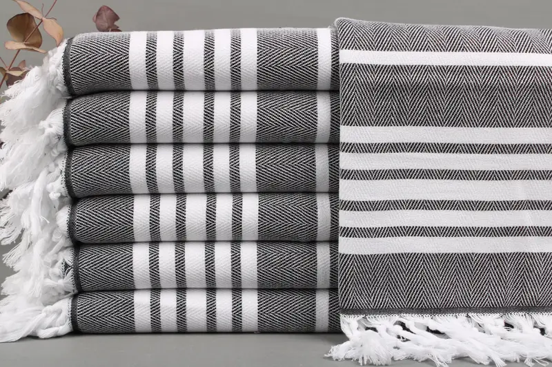 Characterized by exceptional absorbency, the kitchen towels and picnic blankets are woven from organic Turkish cotton, ensuring durability and softness. Each piece measures 20x40 inches (50x100 centimeters) with a tolerance of ± 2 inches or 5 centimeters due to hand-weaving, providing flexibility in fit. Weighing 120 grams, these towels are pre-shrunk, resulting in consistent quality and comfort.