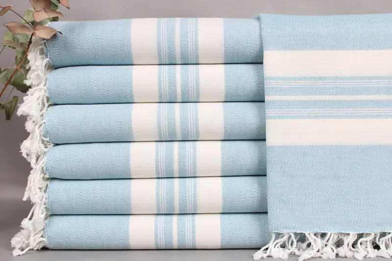 Characterized by its superior absorbency and hypoallergenic properties, these towels are woven from organic Turkish cotton on traditional looms, ensuring durability and softness. Resulting in a weight of 250 grams and a size of 38x60 inches (95x150 centimeters), with tolerances of ± 2 inches or 5 centimeters due to hand-weaving.