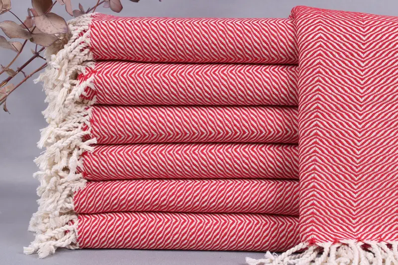 Turkish towels are woven from organic Turkish cotton on looms, ensuring high quality and durability. Resulting in a weight of 400 grams, these towels have dimensions of 40x71 inches or 100x180 centimeters with a tolerance of ± 2 inches or 5 centimeters due to the hand-weaving process. Each item, including towels, blankets, and hand towels, can be personalized with letters, names, or logos using embroidery, enhancing its utility across various applications.