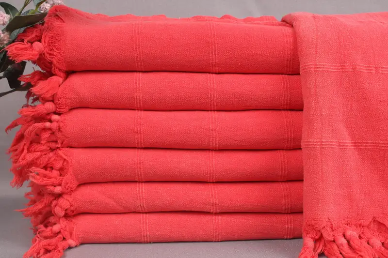 Woven from organic Turkish cotton, the towels ensure excellent absorbency and durability, resulting in a soft, high-quality texture. Dimensions measure 36x67 inches or 90x170 centimeters with a tolerance of ±2 inches or 5 centimeters, weighing 370 grams. Each piece is handmade on looms, providing a unique, artisanal product.