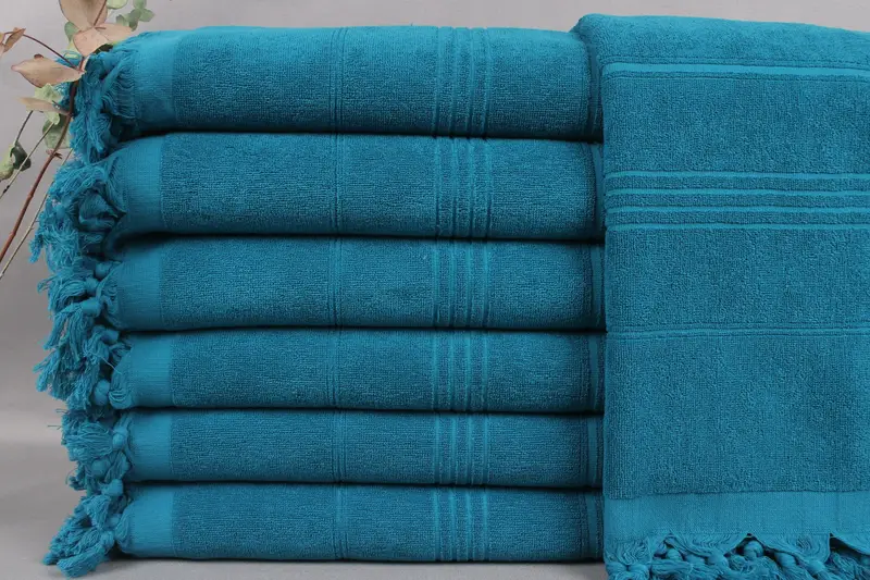 These organic Turkish towels are made from Turkish cotton, ensuring excellent absorbency and comfort. Measuring 36x71 inches (90x180 cm) with a tolerance of ± 2 inches (5 cm), these towels weigh 500 grams. Each piece is meticulously hand-woven on looms, resulting in a consistent texture.