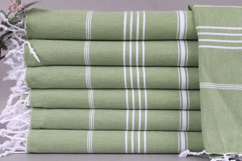 Characterized by its organic Turkish cotton composition, these beach towels ensure enhanced absorbency and durability. Each towel is meticulously woven by hand, resulting in a lightweight fabric of 265 grams. Dimensions are specified at 71x40 inches, translating to 180x100 centimeters with a tolerance of ±2 inches or 5 centimeters due to the hand-weaving process.