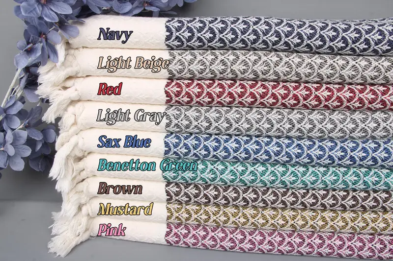 Organic and recycled cotton fibers ensure high absorbency and sustainability, characterized by their hypoallergenic properties. Each towel exhibits precise dimensions of 34x18 inches (45x85 cm) with a weight of 120 grams, featuring hand-weaving tolerances of ± 2 inches or 5 cm. Hand-woven in Turkey, these towels are available with personalized embroidery, pre-shrunk, and shipped internationally with free delivery for orders over 35 USD. The return policy and care instructions can be reviewed at the provided links.