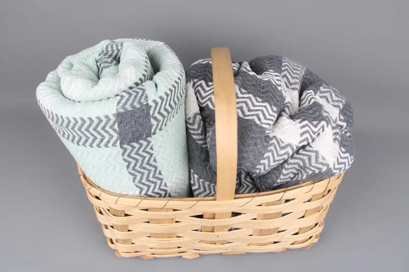 Woven blankets are characterized by their multi-material composition, including cotton derived from recycled and organic sources. They feature a striped pattern executed through sashiko, shibori, and block print techniques. Ensuring an optimal balance between absorbency and breathability, these blankets are ideal for versatile indoor applications.