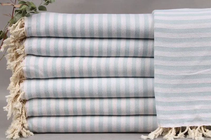 Composed of organic Turkish cotton, the towels ensure high absorbency and durability, characterized by their hand-woven technique on looms. Each towel measures 40x71 inches or 100x180 centimeters, with a tolerance of ± 2 inches or 5 centimeters. The towels weigh approximately 290 grams and benefit from the pre-washed process, enhancing softness with subsequent washes.