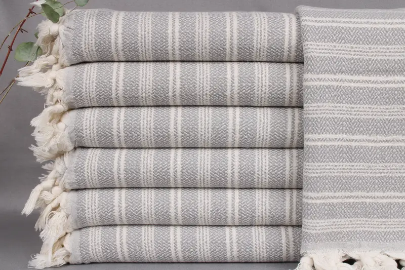 Each listing includes one piece, such as a towel, blanket, or hand towel, characterized by its organic Turkish cotton composition, ensuring high absorbency and durability. These towels measure 18x32 inches or 45x80 centimeters, weighing approximately 120 grams, with a hand-weaving tolerance of ±2 inches or 5 centimeters. Each product can be personalized with embroidery, letters, or logos, with specific detailing required for customization including font, color, and placement. Free global shipping is available for orders over 35 USD, delivered v...