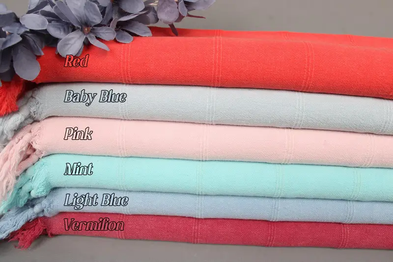 Organic cotton and recycled cotton ensure sustainability, characterized by durability and softness. Each piece measures 36x22 inches or 55x90 centimeters, weighing 144 grams. Weaving tolerances allow for a variance of ±2 inches or 5 centimeters.