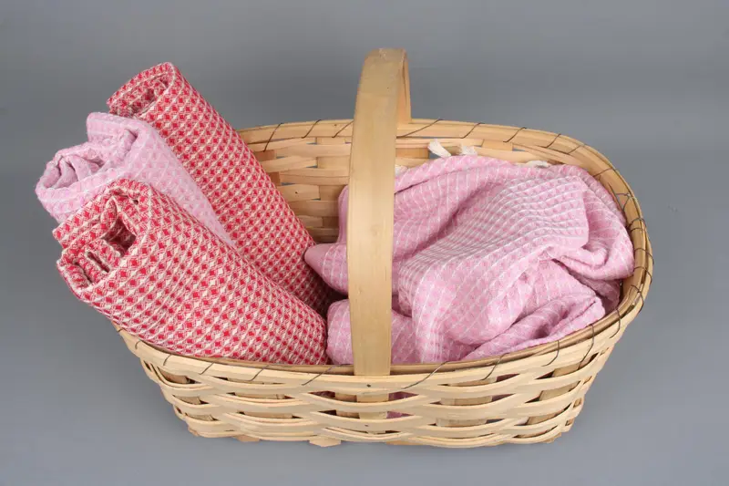 Organic cotton characterizes these 22"x44" towels, ensuring superior absorbency and breathability. Resulting in a lightweight, durable product weighing 150 grams. The towels are hand-woven on traditional looms with a tolerance of ±2" or 5cm.