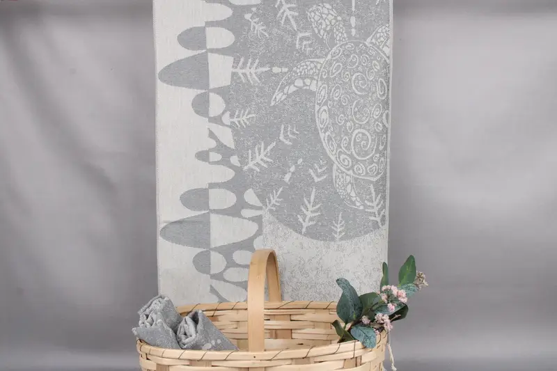 Our kitchen and tea towels are woven from organic Turkish cotton, ensuring exceptional absorbency and durability. Each towel is meticulously hand-woven on looms, resulting in a product characterized by superior craftsmanship. Weighing 120 grams and measuring 18x36 inches (45x90 centimeters), they are slightly tolerant to size variations of ±2 inches or 5 centimeters.