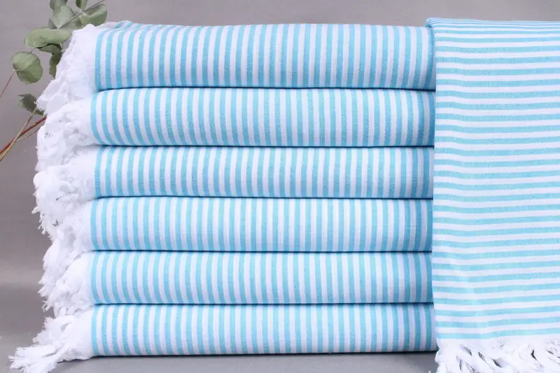 Organic Turkish cotton characterizes the product, ensuring high-quality fiber composition and exceptional absorbency. Resulting in soft, durable towels, the woven towels exhibit a standard tolerance of ± 2 inches or 5 cm due to hand-weaving techniques. The towels measure 40x63 inches or 100x160 centimeters, weighing 200 grams.