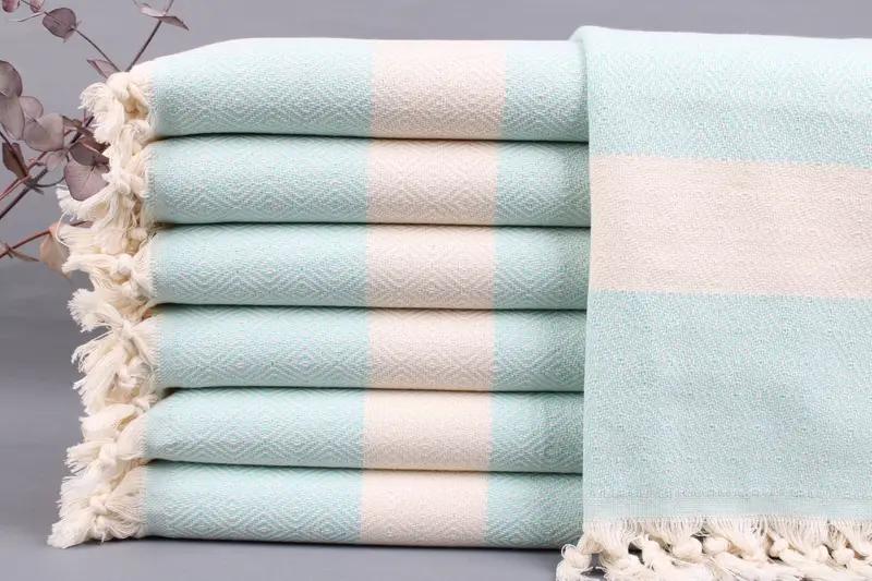 Woven from organic Turkish cotton, the towels ensure superior absorbency and durability. Resulting in a weight of 115 grams per piece, each towel measures 20x36 inches or 50x90 centimeters with a tolerance of ± 2 inches or 5 centimeters due to hand-weaving. Customization includes embroidery or personalization with letters, names, or logos.