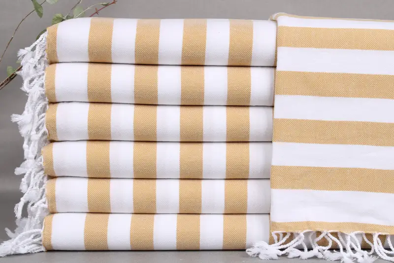 All listings, including the 20x44 inches dish towel, are woven from organic Turkish cotton. This ensures high absorbency and softness, characterized by the gradual softening with each wash. The towels, measuring 50x110 centimeters and weighing 100 grams, have a tolerance of ± 2 inches or 5 centimeters due to hand-weaving.