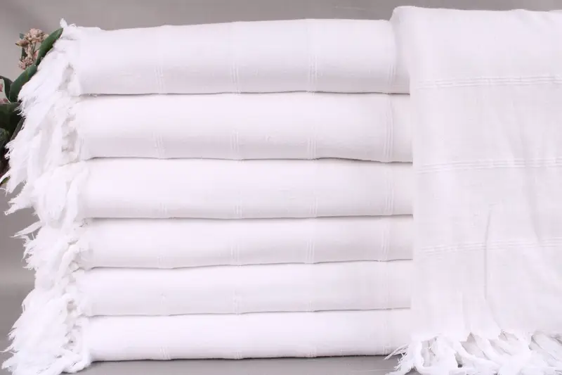 The collection comprises Turkish towels and blankets characterized by their organic Turkish cotton composition, ensuring superior absorbency and durability. Each item measures 71x91 inches (180x230 cm), weighing 980 grams, with a weaving tolerance of ±2 inches (5 cm). These products are meticulously hand-woven on looms, resulting in a high-quality finish.