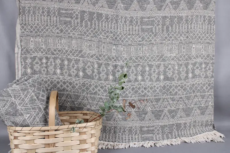 Woven from organic Turkish cotton, these towels and throws are characterized by their absorbency and durability. Ensuring softness with each wash, the material is pre-shrunk for consistent sizing. Towels and throws measure 91x97 inches or 230x245 centimeters with a tolerance of ±2 inches or 5 centimeters due to hand-weaving, weighing approximately 1600 grams.