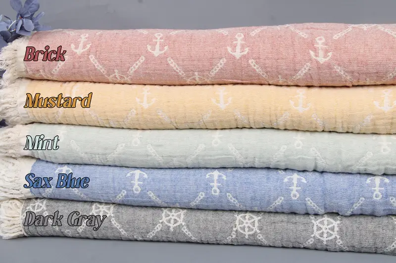 The product is characterized by its fiber composition, primarily recycled cotton and organic cotton, ensuring a high level of absorbency and sustainability. The blanket's dimensions are 87x67 inches or 220x170 centimeters, with a tolerance of ±2 inches (±5 cm). Weighing in at 1200 grams, these items have been hand-woven on traditional looms.