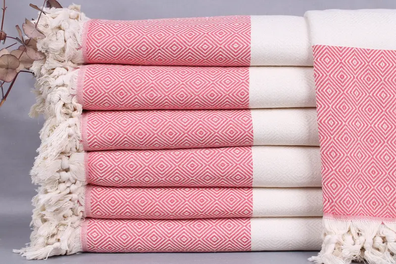 Characterized by the use of organic Turkish cotton, the blankets ensure durability and absorbency. Resulting in towels or throws that become softer with each wash. All products are woven by hand on looms with a dimension of 79x95 inches or 200x240 centimeters.