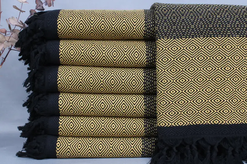 Turkish blankets are woven from organic Turkish cotton, ensuring high absorbency and durability. Resulting in a product that is lightweight yet effective, the 79x99 inches (200x250 cm) blanket weighs 1240 grams. Weaving tolerances of ±2" (±5 cm) are expected due to the manual production process.