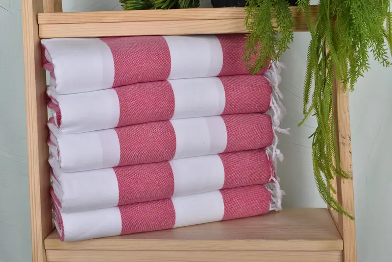 Crafted from organic cotton, the 40"x71" fuchsia cotton towel is characterized by high absorbency and durability. Ensuring dimensions of 70x40 inches, the towel's weight is 0 grams, with slight variations possible due to hand-weaving tolerances of 1-2.5cm. Customers can opt for embroidery customization with names, initials, or logos, following specific guidelines for font and placement.