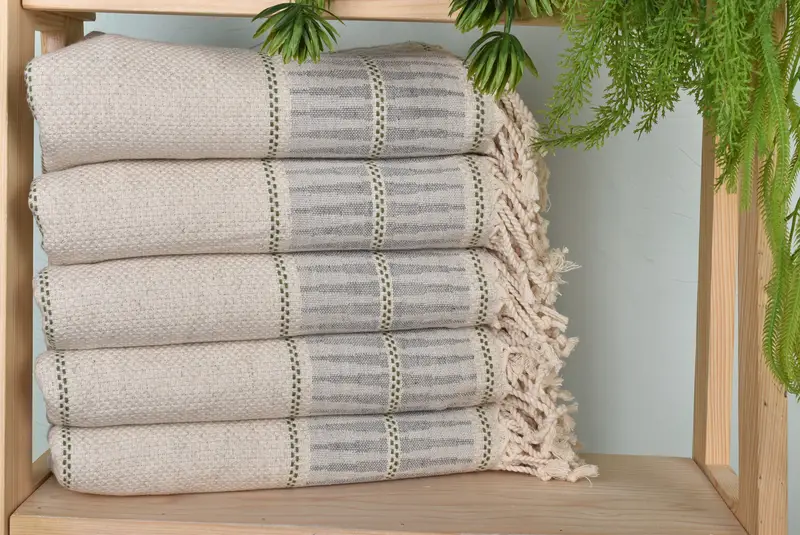 Each towel is hand-woven on a loom, resulting in potential slight variations within a tolerance of 1-2.5 cm. Pre-shrunken for optimal use, they are recommended to be washed before the first use ...