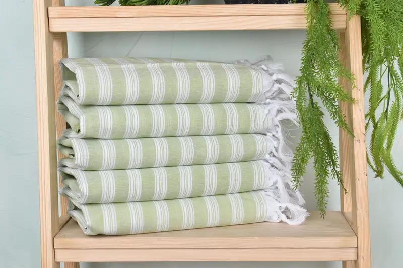 This light khaki green cotton towel is characterized by its organic cotton and linen composition, ensuring both durability and softness. Resulting in a plush texture, the towel is pre-shrunk and measures 40x71 inches with a weight of 210 grams, allowing for flexibility within a 1-2.5cm tolerance due to its hand-weaving process. Customization is available through embroidery with options for names, initials, or logos, providing personalization. Pre-shrunk towels are ready for immediate use. Orders are shipped within one day and can take up to two...