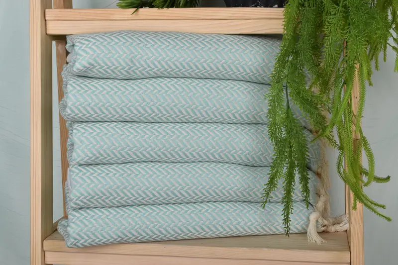 Crafted meticulously, the 18x36 inches mint cotton tea towel is characterized by its organic cotton and linen blend, ensuring durability and maximum absorbency. Measuring precisely 36x18 inches and weighing 100 grams, these hand towels exhibit a minor tolerance of 1-2.5cm due to their handmade nature. Embroidery customization is available, with options for names, initials, or logos in various fonts and thread colors, while pre-washed status is recommended before first use.