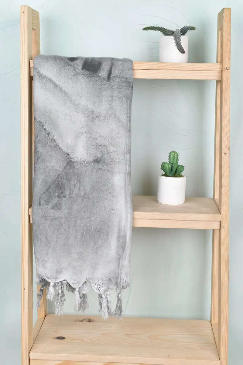 Characterized by organic cotton/linen composition, the batik towel ensures exceptional absorbency and comfort. Resulting in a dimension of 38x71 inches (96.52x180.34 cm) and weighing 325 grams, this handmade bath towel features slight variations due to its hand-weaving process.