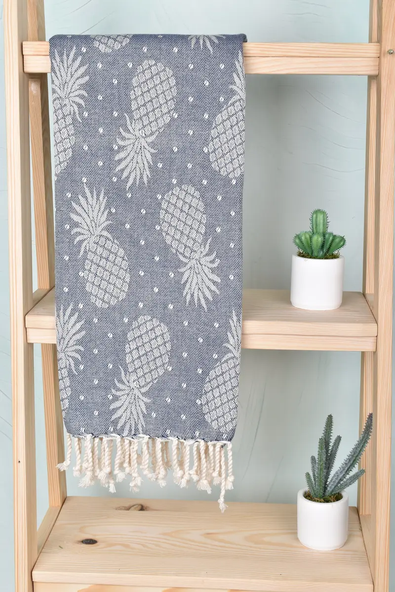 The Monogram Beach Towel is characterized by its organic cotton and linen composition, ensuring soft touch and superior absorbency. Measuring 40x79 inches with a weight of 350 grams, these towels exhibit slight variations due to their hand-weaving process. Customization options include embroidery of names, initials, or logos, with meticulous attention to font choice and color placement.