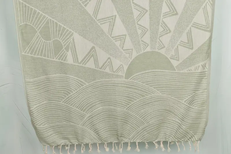 The beach towel is characterized by its organic cotton/linen composition, ensuring soft touch and superior absorbency. It measures 40 x 67 inches and weighs approximately 320 grams, with slight variations due to the hand-weaving process. Embroidery customization is available for names, initials, or logos, and pre-shrunk status is maintained. Towels are shipped within 1-2 days via DHL Express or FedEx for international orders. Please note that returns and exchanges are not accepted for personalized items.
