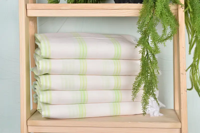 Organic cotton, characterized by natural fibers, ensures high absorbency and breathability. The 40x71 inches towel with a weight of 310 grams provides a substantial yet lightweight feel. Dimensions might vary by 1-2.5cm due to hand-weaving.