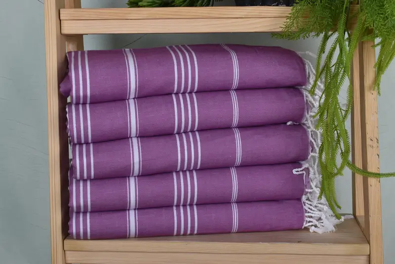 The 40"x71" Damson Cotton Towel, characterized by its organic cotton construction, is designed with sub-category beach towels in mind. Its handmade nature may result in minor variations of up to ...