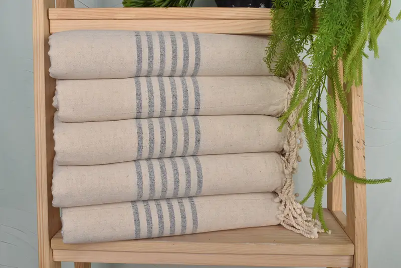 Composed of organic cotton and linen, the towel ensures breathability and superior absorbency, making it ideal for beach or bath use. Measuring 67 inches by 36 inches and weighing 250 grams, this towel is a staple for personal or gift use. Its hand-woven nature results in slight variations of up to 2.5 cm.