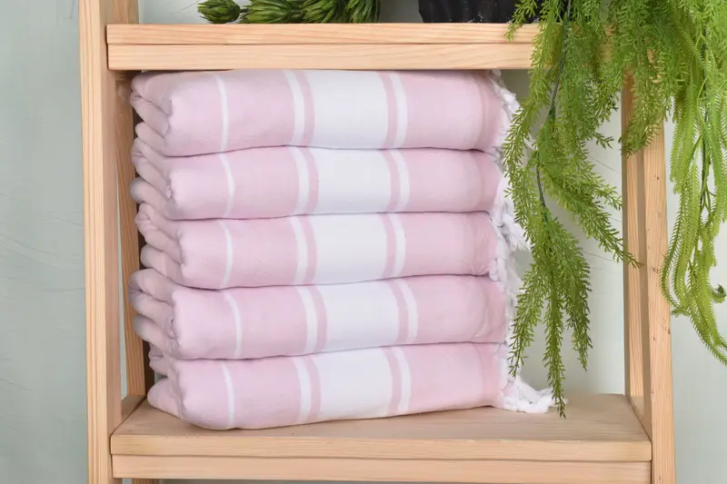 The Turkish Beach Towel is composed of organic cotton and linen, characterized by superior absorbency and a soft texture. Measuring 63 x 36 inches with a weight of 450 grams, these towels are handwoven on a loom, resulting in slight variations within a tolerance of 1-2.5 cm. Customization is available for embroidery, including names, initials, or logos, and personalization is not accepted for returns due to its bespoke nature.