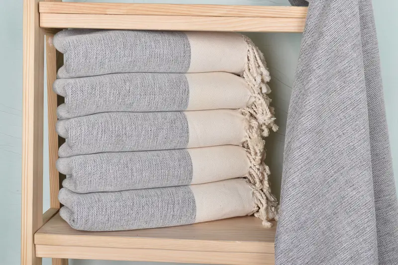 Organic cotton and linen blend characterize the fabric of the 40x63 inches beach towel, ensuring superior absorbency and durability. Weighing approximately 400 grams, these towels exhibit slight variations in size and weight due to their handmade nature, resulting in weaving tolerances of up to 1-2.5cm.