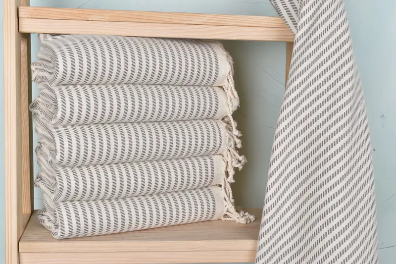 Organic cotton and linen fibers ensure superior absorbency and softness, providing a comfortable towel experience. Characterized by a length of 40 inches and a width of 71 inches, with a weight of 340 grams, these beach towels are meticulously woven on a loom. Each piece might vary slightly in size due to their handmade nature, with tolerances within 1-2.5 cm.