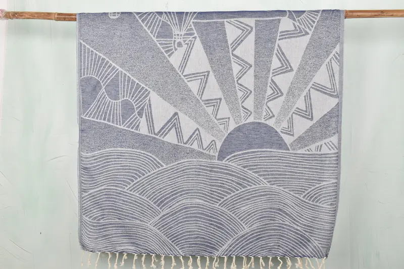 Organic cotton and linen blend ensures superior absorbency and durability, characterized by a hypoallergenic and eco-friendly profile. The beach towel measures 40x67 inches with a weight of 320 grams, hand-woven with potential minor dimensional variations of up to 2.5 cm. Each towel can be personalized with embroidered names, initials, or logos, selected from specified fonts and thread colors, ensuring a tailored gifting experience. Pre-washed for customer use, these towels require a 30-degree wash with a maximum of 600 cycles, followed by air ...