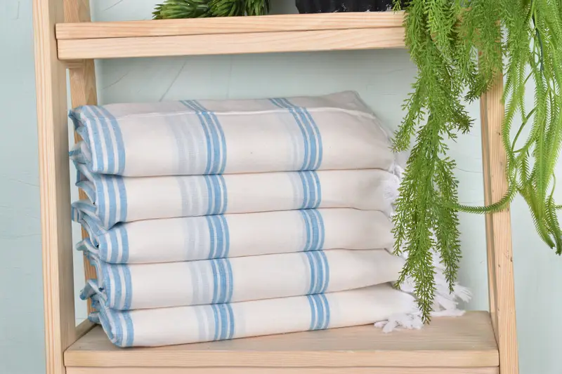 Ensuring optimal absorbency and durability, these beach towels are crafted from organic cotton and linen, characterized by their natural fibers and minimal chemical treatment. Resulting in a product that is both environmentally friendly and hypoallergenic. Dimensions are specified at 40 x 71 inches with a weight of 310 grams. Handmade production results in slight variations of up to 1-2.5 cm in size and weight.